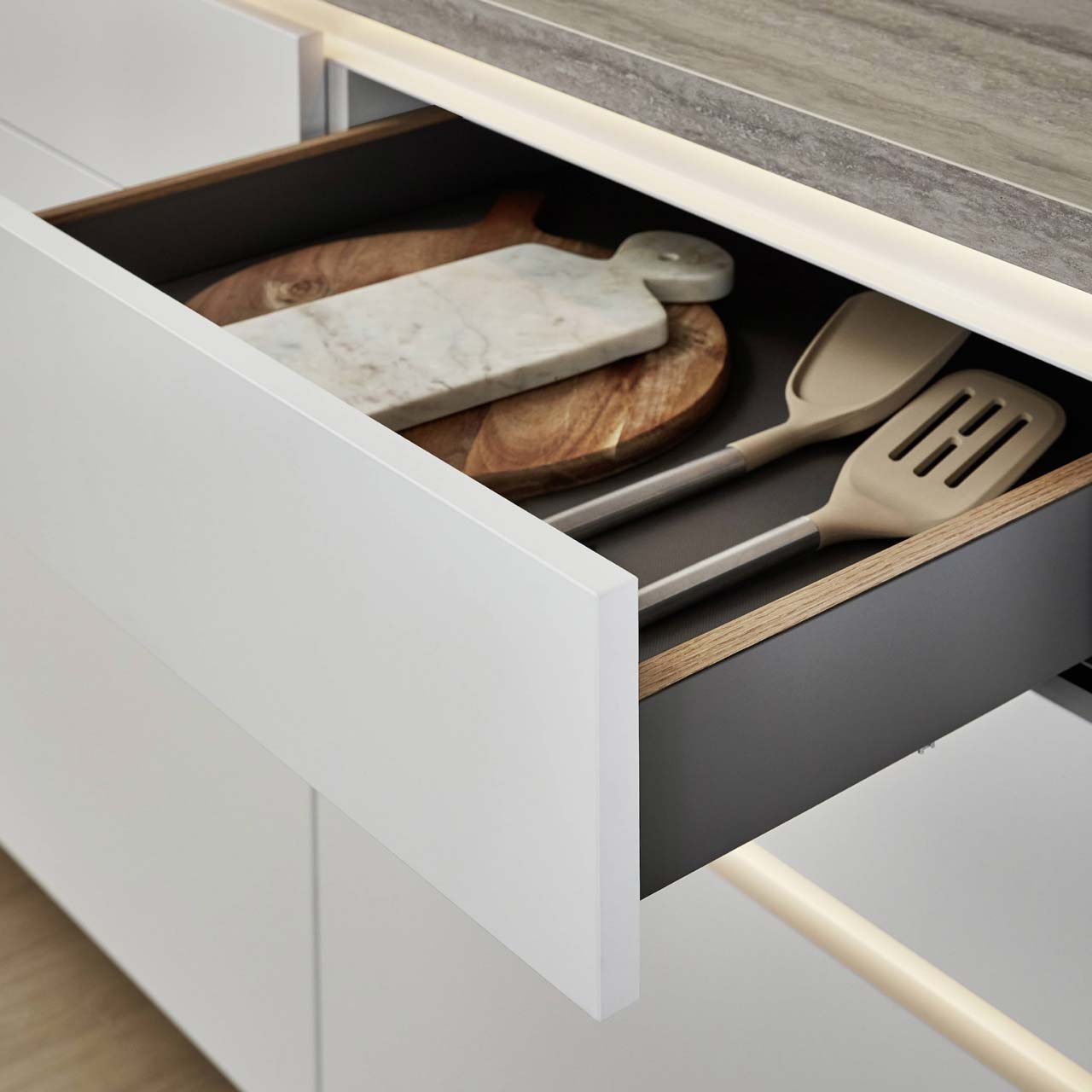 Die neuen Senso-Fronten begeistern bereits mit praktischer Anti-Fingerprint-Beschichtung, maximaler Unempfindlichkeit, ultra-softem Feeling und intensiver Farbtiefe. Nun wurde das Senso-Programm um drei neue Farben erweitert: Weiß, Alpinweiß, Schiefergrau und neu auch in Schwarz als klassische Bestseller, sowie Koralle, Jade und den neuen Pastell-Trendfarben Sky und Olive.