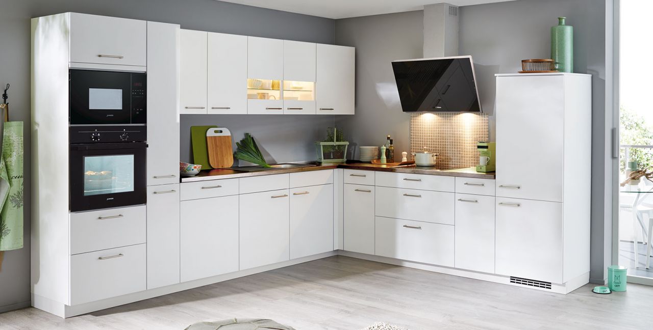 Inklusive Einbaubackofen schwarz Junker JF1300061 Energieeffizienzklasse A, Glaskeramik Kochfeld Junker JR36DT54, Dunstesse Schwarz Airforce AlphaBLA50 Energieeffizienzklasse C, Kühlschrank mit **** Gefrierfach Progress PK0855 Energieeffizienzklasse E, Mikrowelle Junker JP4119260, Einbauspüle Edelstahl Rodi Okio Line 85 Deep, XL-Schränken, Unterschrank mit Frontauszügen, Wandschrank mit Segmentglastüren, Geschirrschrank.