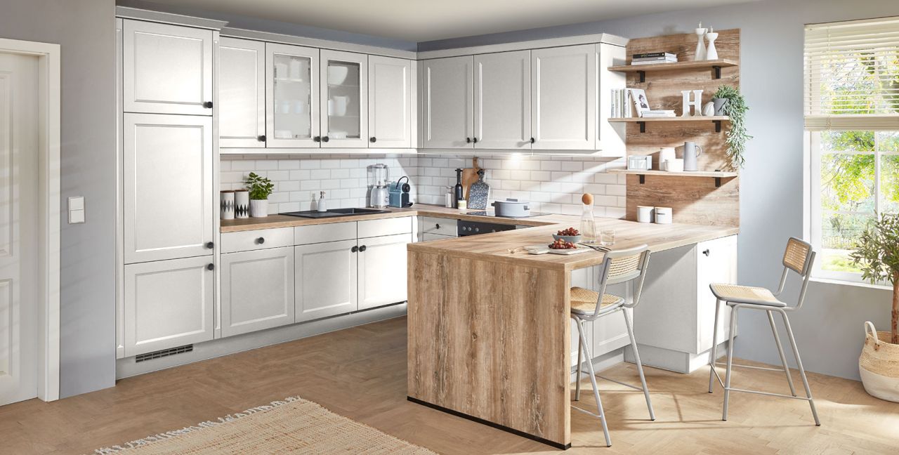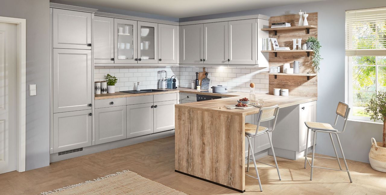 Inklusive Einbauherd Edelstahl Progress PHN13002X Energieeffizienzklasse A, Glaskeramik Kochfeld Progress PES6001E, Flachschirmhaube Progress PDP6040E Energieeffizienzklasse C, Kühlschrank Progress PK0814 Energieeffizienzklasse E, Einbau-Designspüle Elleci Logik 300, Wandborden, Esstheke.